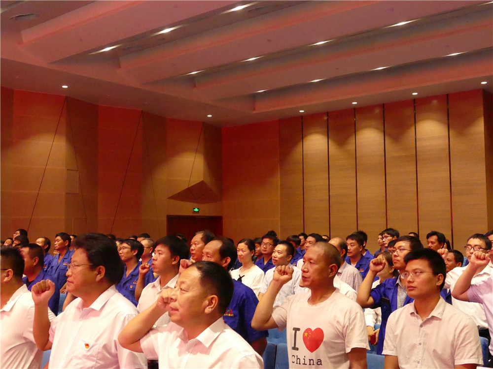 大會(huì)在雄壯的國(guó)歌聲中拉開序幕。首先公司黨委委員、副總經(jīng)理郭日倉(cāng)作了《黨委工作報(bào)告》。報(bào)告總結(jié)了過(guò)去一年來(lái)的黨建工作,指出了黨建工作存在的不足,并提出了下一步工作的努力方向。公司黨委委員、鑄鍛公司副總經(jīng)理曹慶平宣讀《關(guān)于表彰2019年度優(yōu)秀共產(chǎn)黨員的決定》。大會(huì)為2019年度在公司各條戰(zhàn)線涌現(xiàn)出的10名優(yōu)秀黨員頒發(fā)榮譽(yù)證書;接著舉行新黨員入黨宣誓和老黨員重溫入黨誓詞儀式,全體黨員舉起右手,握緊拳頭,面向黨旗,莊嚴(yán)宣誓“我志愿加入中國(guó)共產(chǎn)黨,擁護(hù)黨的綱領(lǐng),遵守黨的章程……”,錚錚誓詞響徹會(huì)議室。