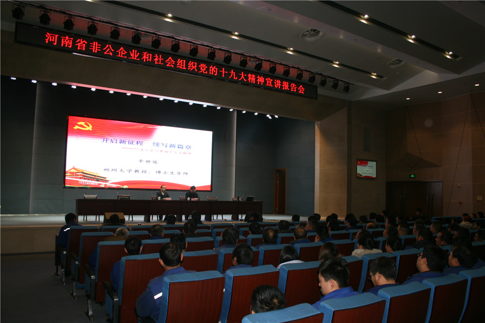 根據(jù)河南省委宣傳部、省委組織部安排部署,省非公企業(yè)和社會組織黨的十九大精神宣講報告會于12月11日下午在林州重機(jī)多功能廳舉行。省十九大精神宣講團(tuán)成員、鄭州大學(xué)教授、博士生導(dǎo)師辛世俊作宣講報告,辛教授從八個方面對十九大報告深入淺出,通俗易懂闡述了報告精神實(shí)質(zhì)和深刻內(nèi)涵。安陽市委宣傳部、市委組織部,林州市委宣傳部有關(guān)領(lǐng)導(dǎo)參加并聆聽了宣講報告。公司黨委書記郭現(xiàn)生及中高層領(lǐng)導(dǎo),全體黨員及入黨積極分子,機(jī)關(guān)各部室管理人員及車間管理人員共300余人聽取宣講報告。會后,公司黨委書記、董事長郭現(xiàn)生接受了安陽電視臺的采訪。