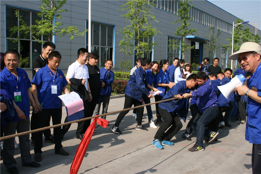 開幕式結(jié)束后,籃球、短跑、接力、拔河、跳繩、踢毽、乒乓球、羽毛球、象棋等13個項(xiàng)目在指定的比賽場地同時舉行?;@球場上身穿藍(lán)球衣朗坤公司隊(duì)和紅色球衣生產(chǎn)系統(tǒng)隊(duì)的比賽精彩紛呈,扣人心弦。隨著"砰"一聲,發(fā)令槍響,接力運(yùn)動員疾步如飛,向終點(diǎn)沖刺。觀眾“加油、加油”的助威吶喊聲,將拔河比賽推向高潮。