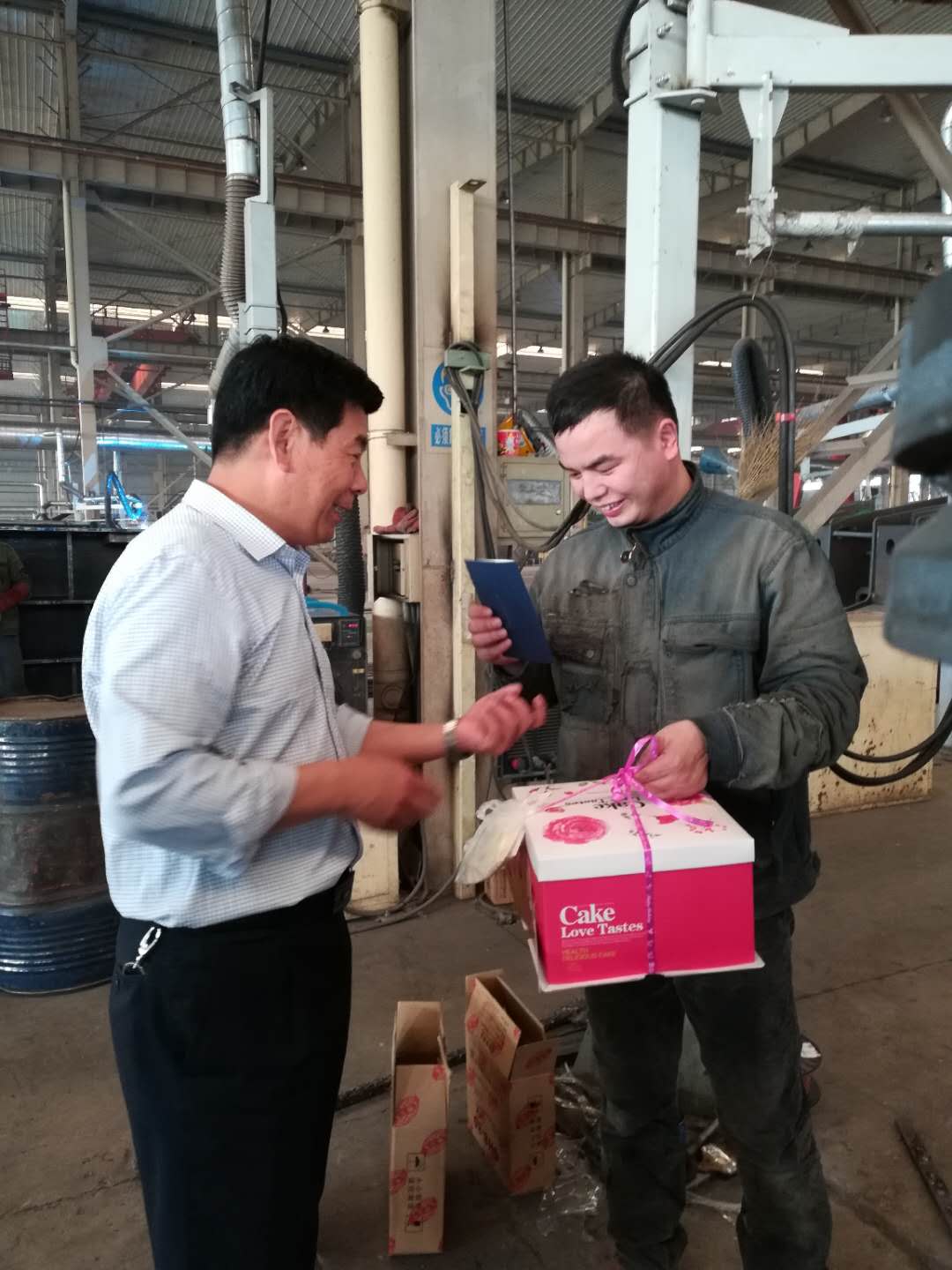 5月10日上午8時許,公司工會主席路建存攜帶生日蛋糕和生日賀卡走進(jìn)車間,親自將生日禮物送到當(dāng)天過生日的員工手中,并代表公司董事長、總經(jīng)理表示生日祝賀。當(dāng)路主席把生日蛋糕送到員工手中時,他們感到非常驚訝,有的員工本人都不記得今天是自己生日,而公司把生日禮物送到了手中,員工們激動的說:非常感謝公司領(lǐng)導(dǎo)的關(guān)懷。