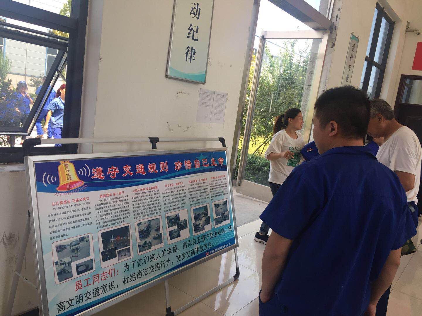 其次,公司加大宣傳力度。在公司門口、考勤室等地?cái)[放交通安全宣傳版面,懸掛交通安全條幅,并不間斷地播放交通宣傳教育口號(hào),提醒廣大員工上下班時(shí)刻注意交通安全,提高交通安全意識(shí),自覺遵守交通規(guī)則。同時(shí),要求各單位利用班前會(huì)、工作例會(huì)、車間版面及微信平臺(tái)等多種形式,對(duì)本單位員工進(jìn)行交通安全教育,做到交通安全教育工作常態(tài)化、制度化。